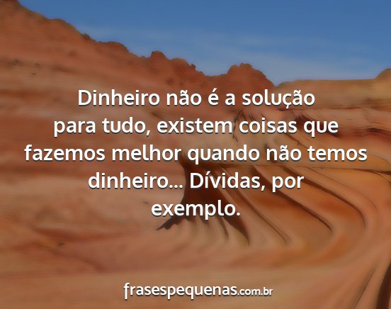Dinheiro não é a solução para tudo, existem coisas que fazemos melhor quando não temos dinheiro... Dívidas, por exemplo.