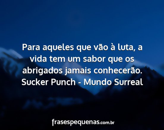 Para aqueles que vão à luta, a vida tem um sabor que os abrigados jamais conhecerão.Sucker Punch - Mundo Surreal