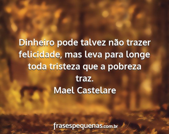 Dinheiro pode talvez não trazer felicidade, mas leva para longe toda tristeza que a pobreza traz.Mael Castelare