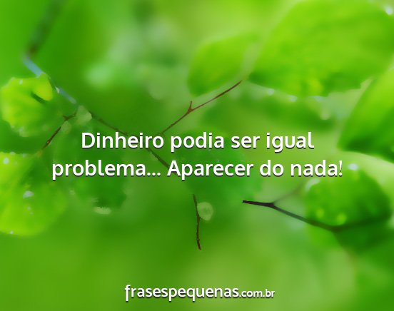 Dinheiro podia ser igual problema... Aparecer do nada!