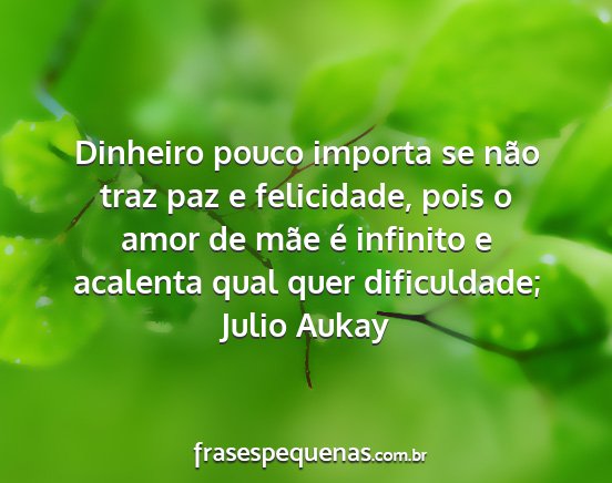 Dinheiro pouco importa se não traz paz e felicidade, pois o amor de mãe é infinito e acalenta qual quer dificuldade;Julio Aukay