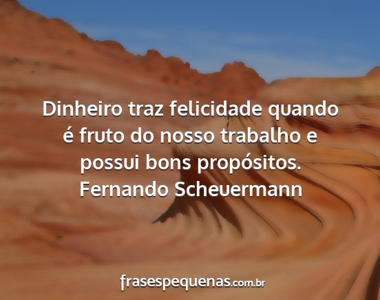 Dinheiro traz felicidade quando é fruto do nosso trabalho e possui bons propósitos.Fernando Scheuermann