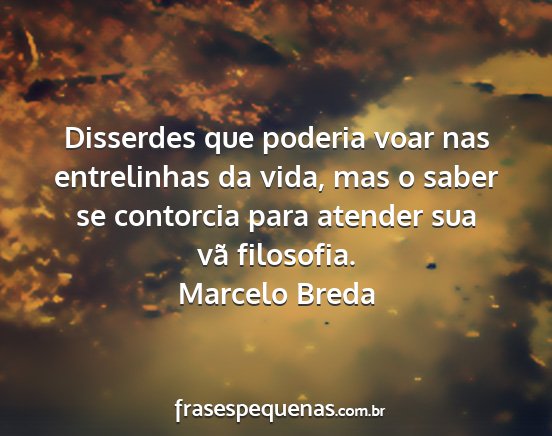 Disserdes que poderia voar nas entrelinhas da vida, mas o saber se contorcia para atender sua vã filosofia.Marcelo Breda