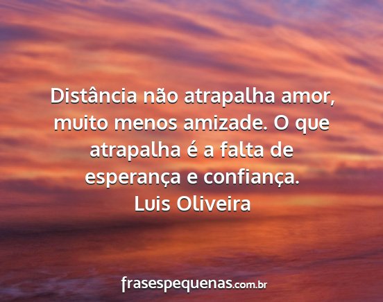 Distância não atrapalha amor, muito menos amizade. O que atrapalha é a falta de esperança e confiança.Luis Oliveira