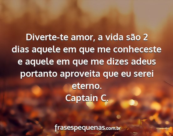 Diverte-te amor, a vida são 2 dias aquele em que me conheceste e aquele em que me dizes adeus portanto aproveita que eu serei eterno.Captain C.