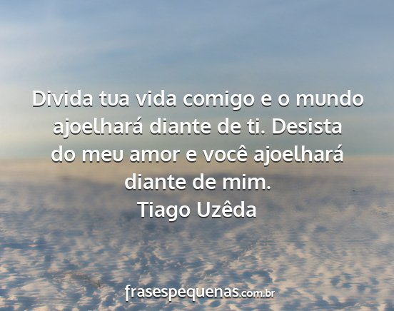 Divida tua vida comigo e o mundo ajoelhará diante de ti. Desista do meu amor e você ajoelhará diante de mim.Tiago Uzêda