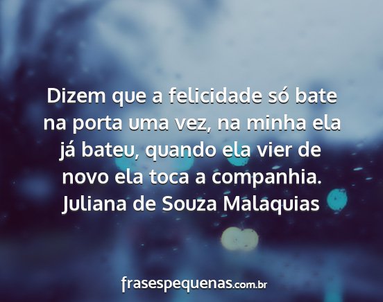 Dizem que a felicidade só bate na porta uma vez, na minha ela já bateu, quando ela vier de novo ela toca a companhia.Juliana de Souza Malaquias