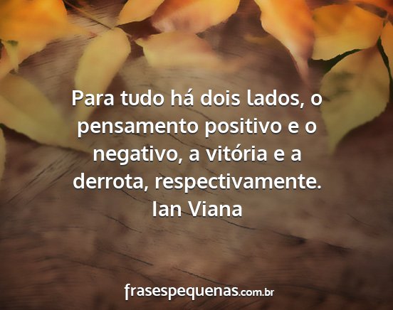 Para tudo há dois lados, o pensamento positivo e o negativo, a vitória e a derrota, respectivamente.Ian Viana