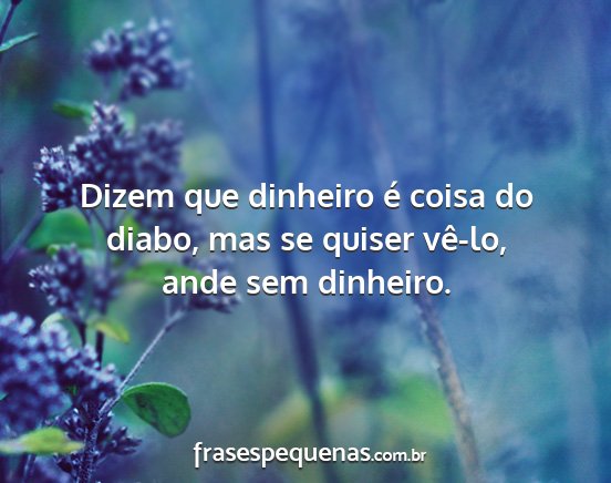 Dizem que dinheiro é coisa do diabo, mas se quiser vê-lo, ande sem dinheiro.