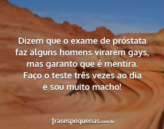 Dizem que o exame de próstata faz alguns homens virarem gays, mas garanto que é mentira. Faço o teste três vezes ao dia e sou muito macho!