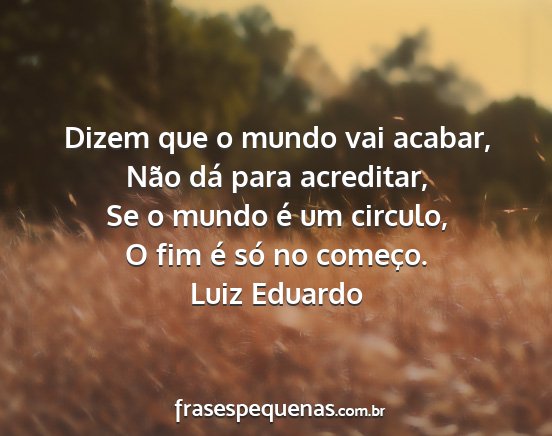 O fim é só no começo.Luiz Eduardo