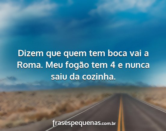 Dizem que quem tem boca vai a Roma. Meu fogão tem 4 e nunca saiu da cozinha.