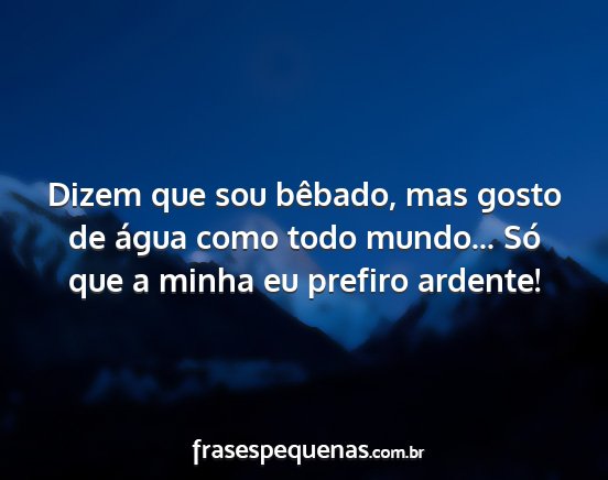 Dizem que sou bêbado, mas gosto de água como todo mundo... Só que a minha eu prefiro ardente!