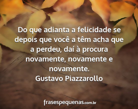 Do que adianta a felicidade se depois que você a têm acha que a perdeu, daí à procura novamente, novamente e novamente.Gustavo Piazzarollo