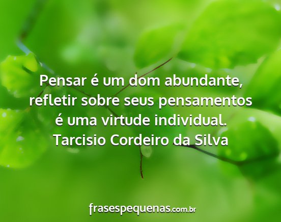 Pensar é um dom abundante, refletir sobre seus pensamentos é uma virtude individual.Tarcisio Cordeiro da Silva