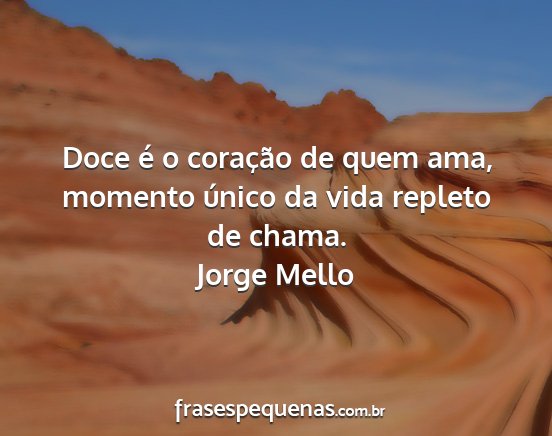 Doce é o coração de quem ama, momento único da vida repleto de chama.