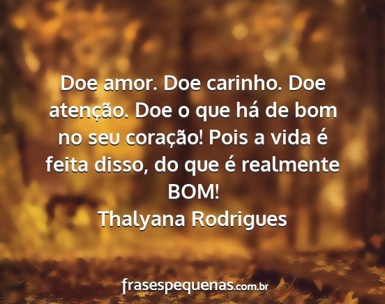 Doe amor. Doe carinho. Doe atenção. Doe o que há de bom no seu coração! Pois a vida é feita disso, do que é realmente BOM!Thalyana Rodrigues