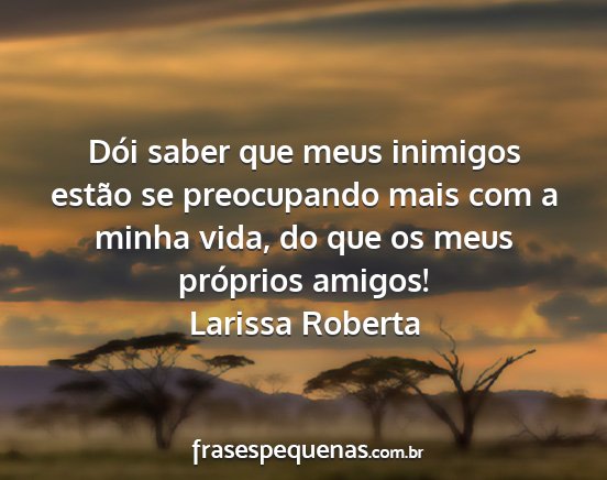 Dói saber que meus inimigos estão se preocupando mais com a minha vida, do que os meus próprios amigos!Larissa Roberta