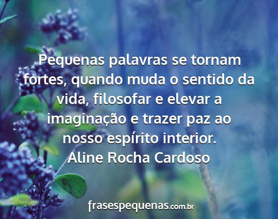 Pequenas palavras se tornam fortes, quando muda o sentido da vida, filosofar e elevar a imaginação e trazer paz ao nosso espírito interior.Aline Rocha Cardoso