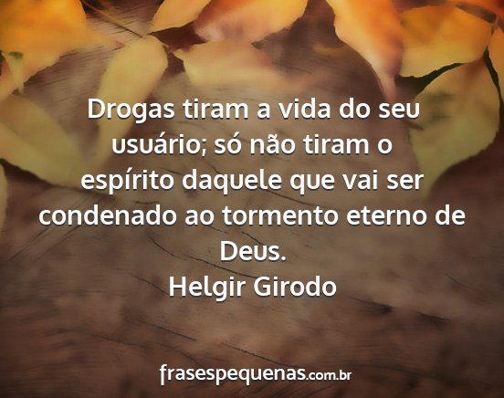 Drogas tiram a vida do seu usuário; só não tiram o espírito daquele que vai ser condenado ao tormento eterno de Deus.Helgir Girodo
