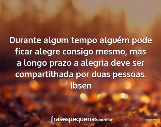 Durante algum tempo alguém pode ficar alegre consigo mesmo, mas a longo prazo a alegria deve ser compartilhada por duas pessoas.Ibsen