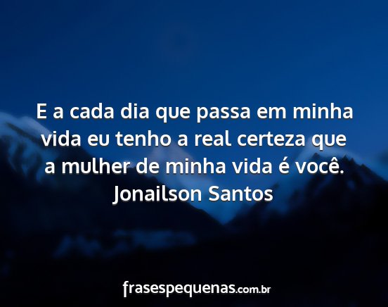 E a cada dia que passa em minha vida eu tenho a real certeza que a mulher de minha vida é você.Jonailson Santos