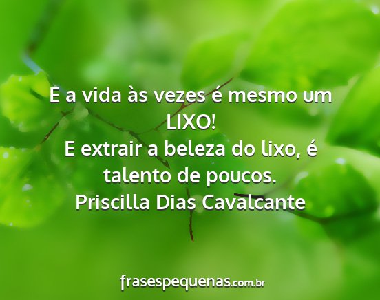 E extrair a beleza do lixo, é talento de poucos.Priscilla Dias Cavalcante