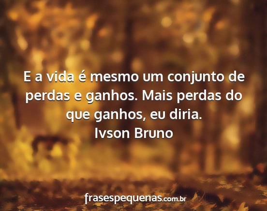 E a vida é mesmo um conjunto de perdas e ganhos. Mais perdas do que ganhos, eu diria.