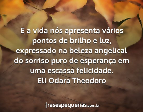 E a vida nós apresenta vários pontos de brilho e luz, expressado na beleza angelical do sorriso puro de esperança em uma escassa felicidade.Eli Odara Theodoro