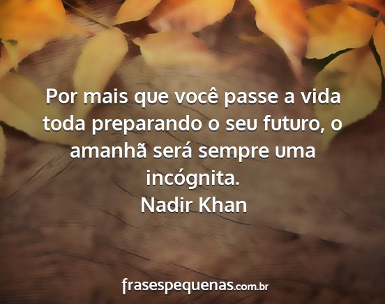 Por mais que você passe a vida toda preparando o seu futuro, o amanhã será sempre uma incógnita.Nadir Khan