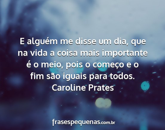 E alguém me disse um dia, que na vida a coisa mais importante é o meio, pois o começo e o fim são iguais para todos.Caroline Prates