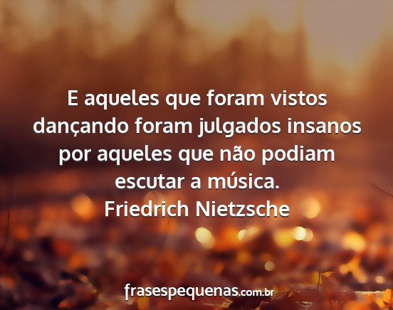 E aqueles que foram vistos dançando foram julgados insanos por aqueles que não podiam escutar a música.Friedrich Nietzsche