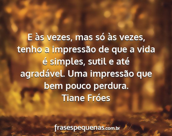 E às vezes, mas só às vezes, tenho a impressão de que a vida é simples, sutil e até agradável. Uma impressão que bem pouco perdura.Tiane Fróes