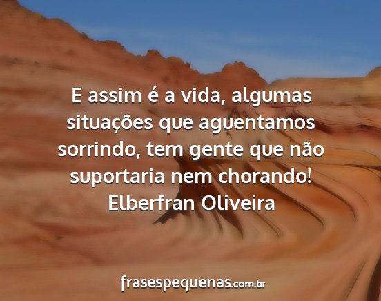 E assim é a vida, algumas situações que aguentamos sorrindo, tem gente que não suportaria nem chorando!Elberfran Oliveira