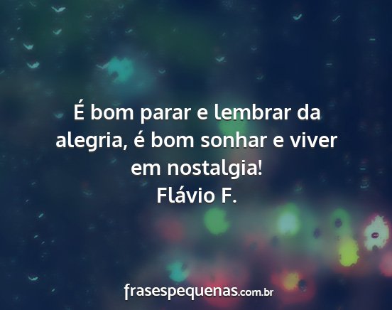 É bom parar e lembrar da alegria, é bom sonhar e viver em nostalgia!