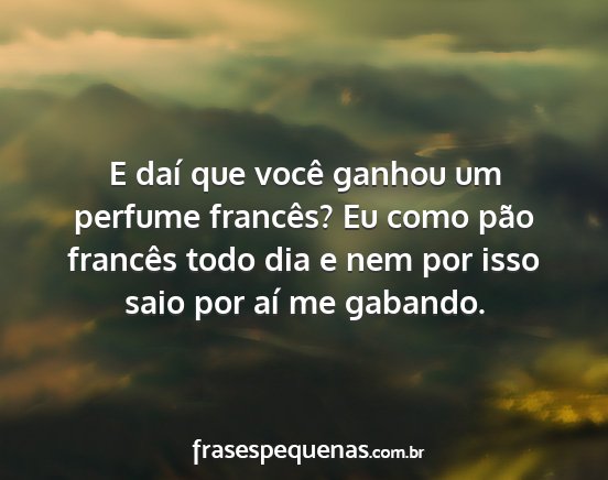 E daí que você ganhou um perfume francês? Eu como pão francês todo dia e nem por isso saio por aí me gabando.
