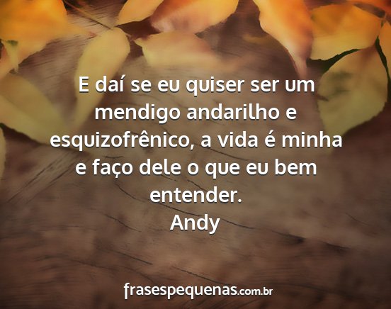 E daí se eu quiser ser um mendigo andarilho e esquizofrênico, a vida é minha e faço dele o que eu bem entender.Andy