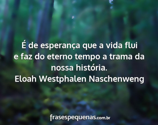 É de esperança que a vida flui e faz do eterno tempo a trama da nossa história.Eloah Westphalen Naschenweng