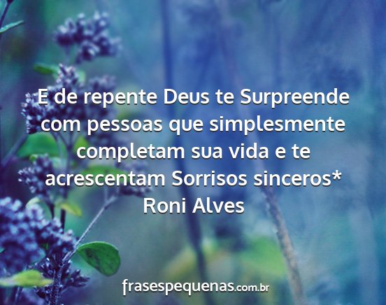 E de repente Deus te Surpreende com pessoas que simplesmente completam sua vida e te acrescentam Sorrisos sinceros*Roni Alves