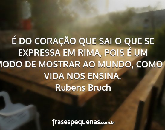 É DO CORAÇÃO QUE SAI O QUE SE EXPRESSA EM RIMA, POIS É UM MODO DE MOSTRAR AO MUNDO, COMO A VIDA NOS ENSINA.Rubens Bruch