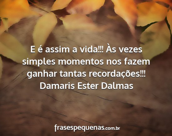 E é assim a vida!!! Às vezes simples momentos nos fazem ganhar tantas recordações!!!Damaris Ester Dalmas