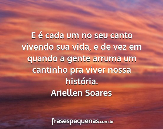 E é cada um no seu canto vivendo sua vida, e de vez em quando a gente arruma um cantinho pra viver nossa história.Ariellen Soares