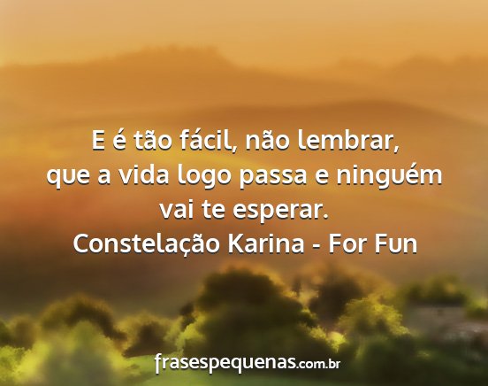 E é tão fácil, não lembrar, que a vida logo passa e ninguém vai te esperar.Constelação Karina - For Fun