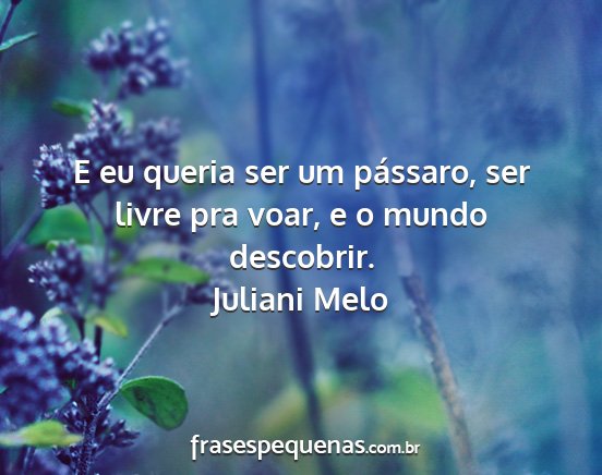 E eu queria ser um pássaro, ser livre pra voar, e o mundo descobrir.