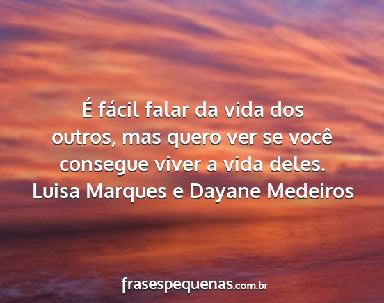 É fácil falar da vida dos outros, mas quero ver se você consegue viver a vida deles.Luisa Marques e Dayane Medeiros