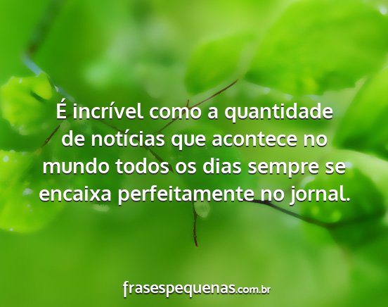 É incrível como a quantidade de notícias que acontece no mundo todos os dias sempre se encaixa perfeitamente no jornal.