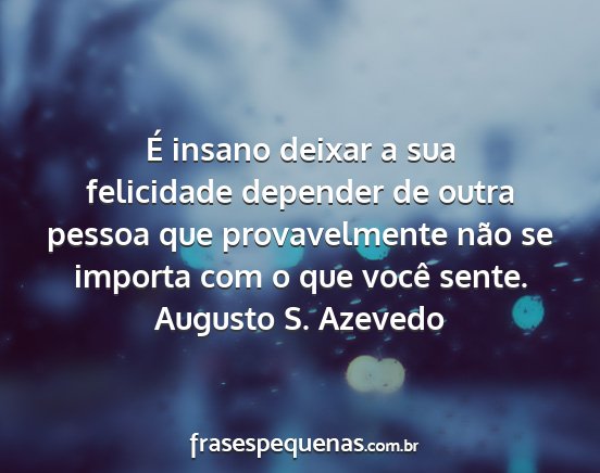 É insano deixar a sua felicidade depender de outra pessoa que provavelmente não se importa com o que você sente.Augusto S. Azevedo