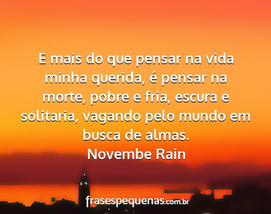 E mais do que pensar na vida minha querida, é pensar na morte, pobre e fria, escura e solitaria, vagando pelo mundo em busca de almas.Novembe Rain