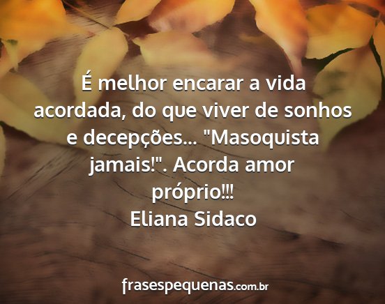 É melhor encarar a vida acordada, do que viver de sonhos e decepções... "Masoquista jamais!". Acorda amor próprio!!!Eliana Sidaco