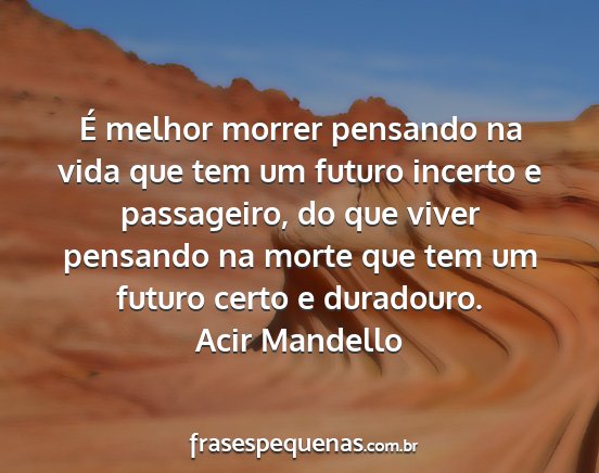 É melhor morrer pensando na vida que tem um futuro incerto e passageiro, do que viver pensando na morte que tem um futuro certo e duradouro.Acir Mandello